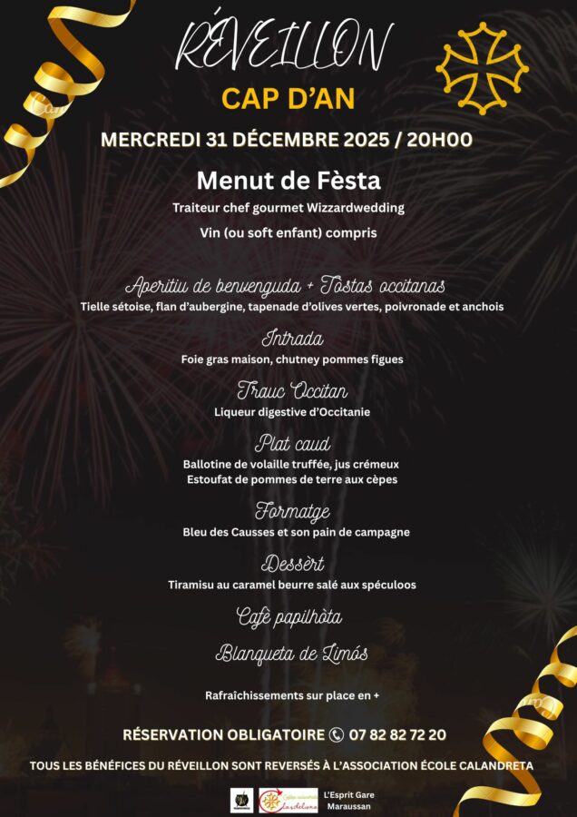 Infos et réservation : Réservations obligatoires avant le 22/12/25 (places limitées) : 07 82 82 72 20 Association Calandreta Collegi Tous les bénéfices sont reversés à l’association École Calandreta