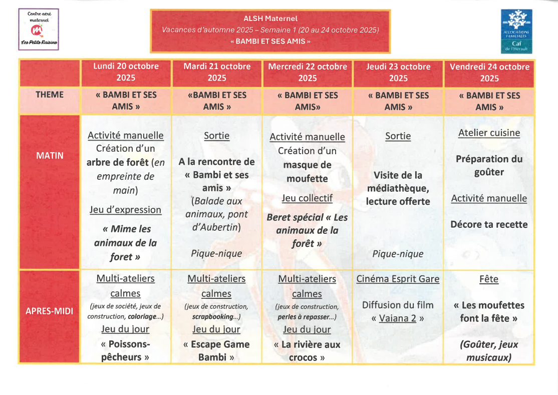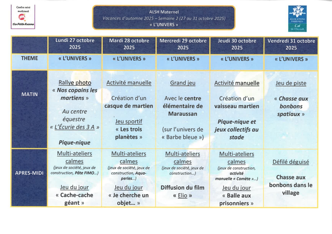 Accueil » Actualité » ALSH PLANNINGS VACANCES D’AUTOMNE