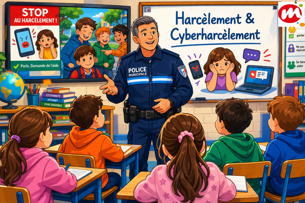 Dans le cadre de la prévention du harcèlement scolaire, le chef de la police municipale est intervenu auprès des élèves de CM1 et CM2 afin de les sensibiliser aux problématiques du harcèlement et du cyberharcèlement. Au cours de cette intervention, plusieurs vidéos pédagogiques ont été diffusées, permettant d’illustrer concrètement les différentes formes que peuvent prendre […]