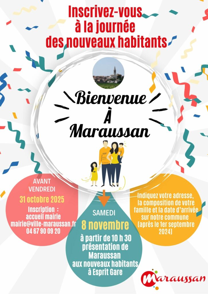 Une journée d’accueil est organisée par la municipalité pour accueillir les nouveaux habitants (arrivés sur Maraussan depuis le 1er septembre 2024) : Samedi 8 novembre 2025 à partir de 10 h 30 à Esprit Gare. Afin d’organiser au mieux cette réception, merci de vous inscrire à l’accueil de la mairie 04 67 90 09 20 […]