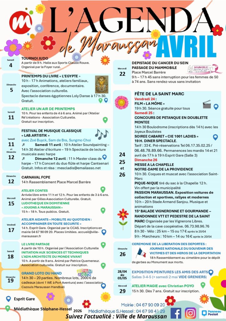 L’agenda du mois d’avril + d’infos page Agenda