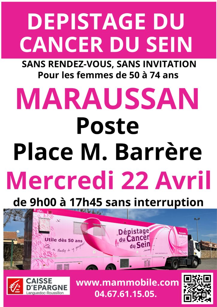 Dépistage du cancer du sein des femmes de 50 à 74 ans Mercredi 15 mai de 9 h à 17 h 30 Place Marcel-Barrère