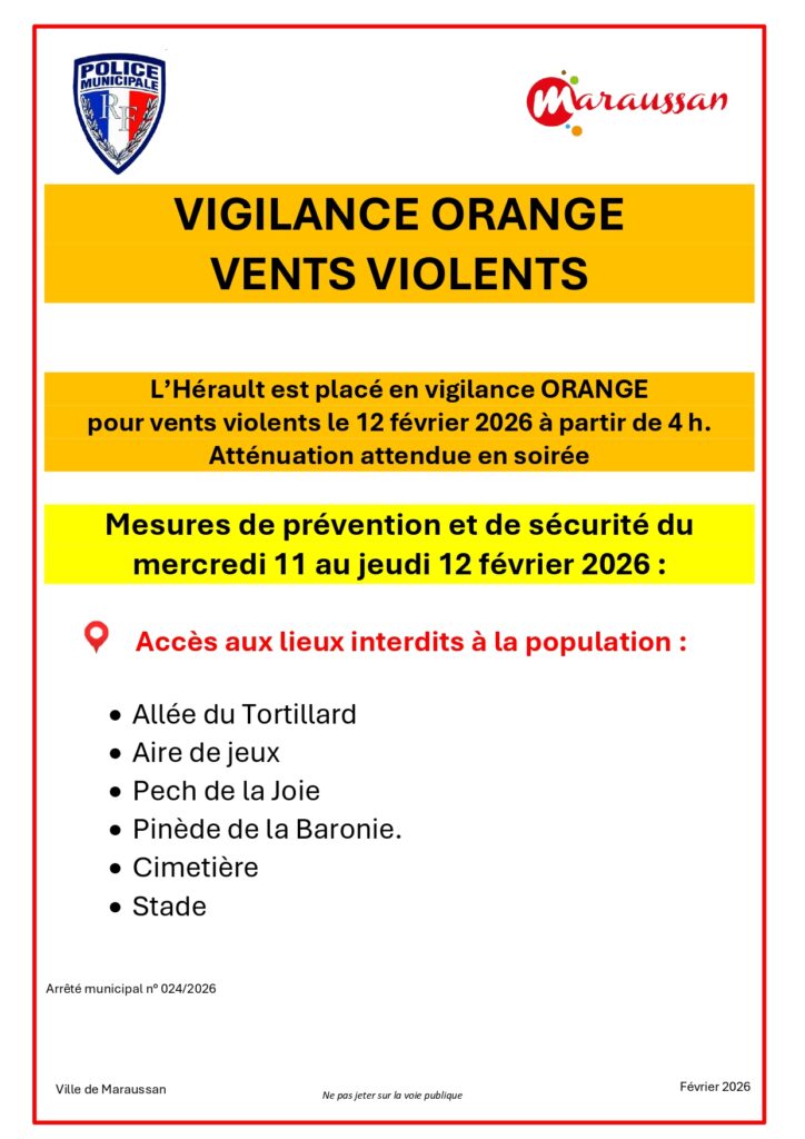 🚫 Circulation de motos cross dans les Puechs : rappel à la réglementation 🚫 (Arrêté municipal n° 167/2024) La mairie de Maraussan souhaite rappeler que la circulation de motos cross et d’engins motorisés est strictement interdite dans le secteur des Puechs : Puech de Lézigno – Puech Feynes – Puech Pailhès – Puech de la […]