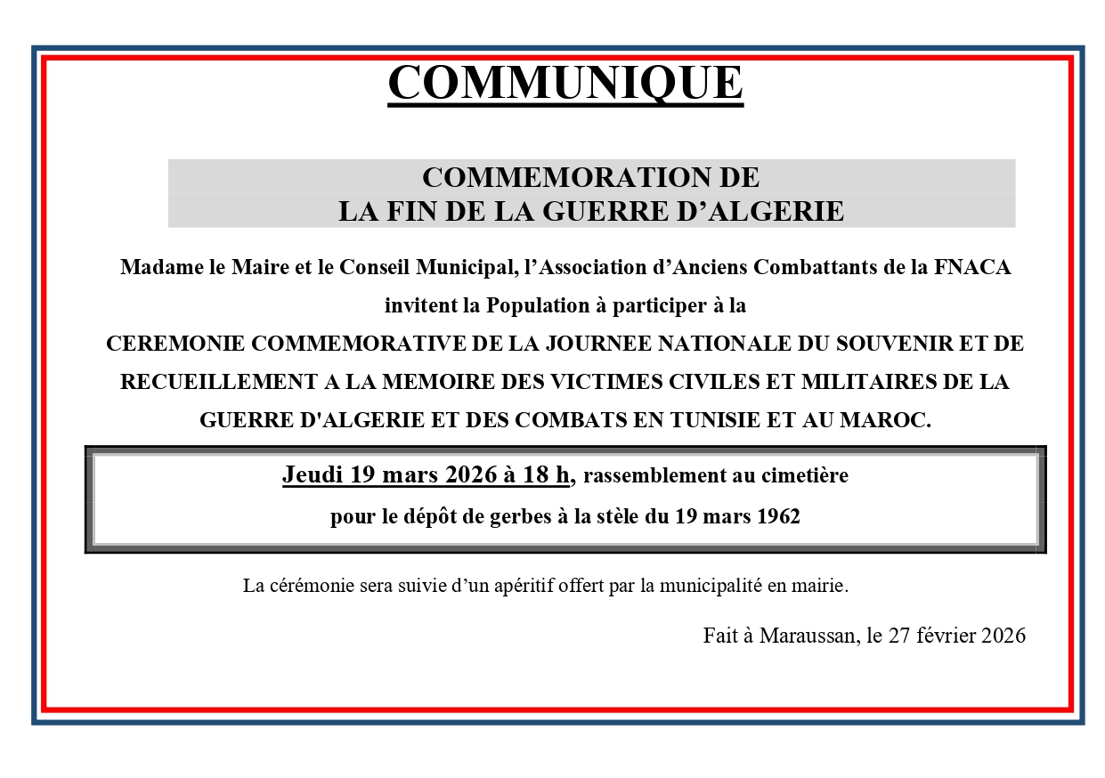 Accueil » Actualité » COMMÉMORATION DU 19 MARS 1962