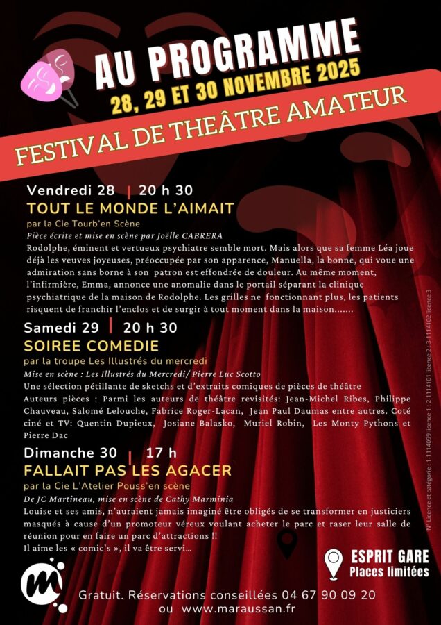 FESTIVAL DE THÉÂTRE AMATEUR 28, 29 ET 30 NOVEMBRE 2025 A MARAUSSAN