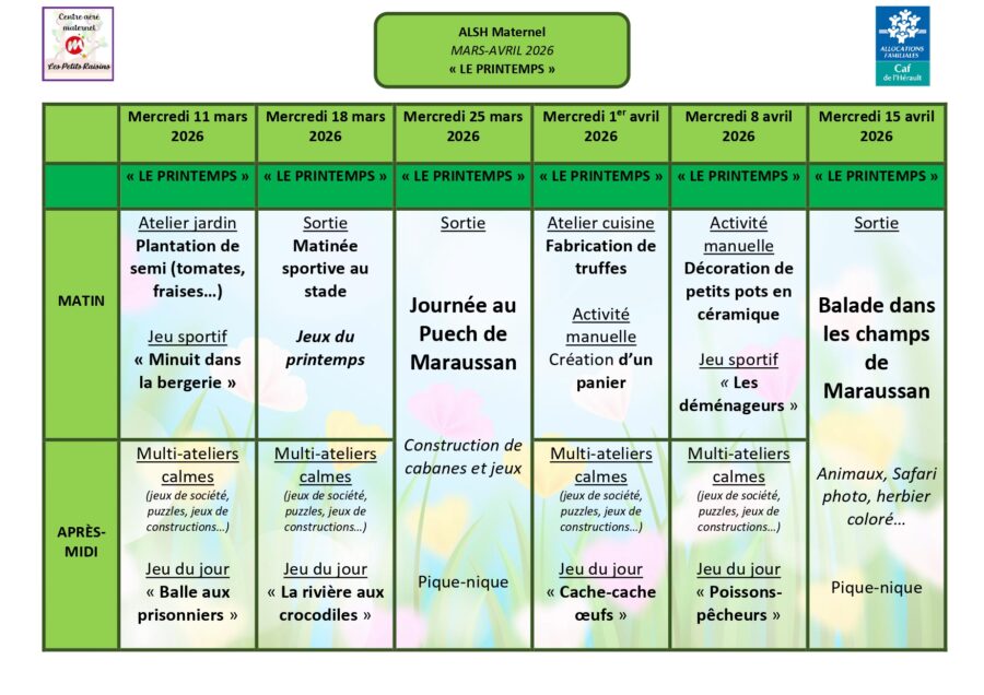 SERVICE JEUNESSE – PLANNING DES MERCREDIS – mars et avril 2026
