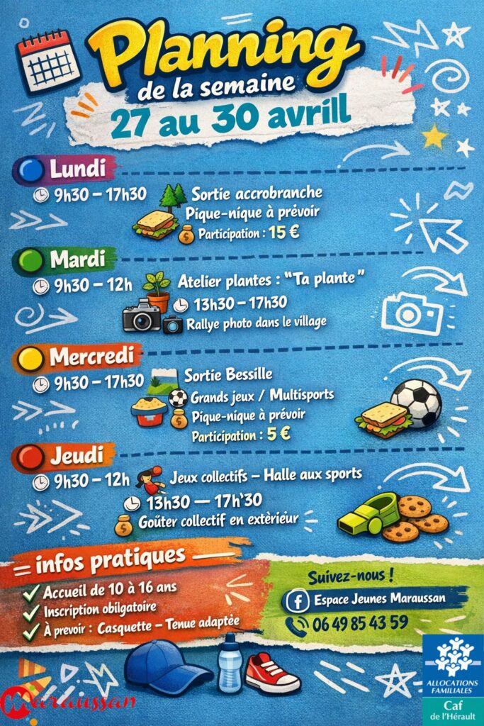 Les vacances arrivent à grand pas, vous trouverez ci-joint les informations concernant l’Espace Jeunes de la ville de Maraussan.
