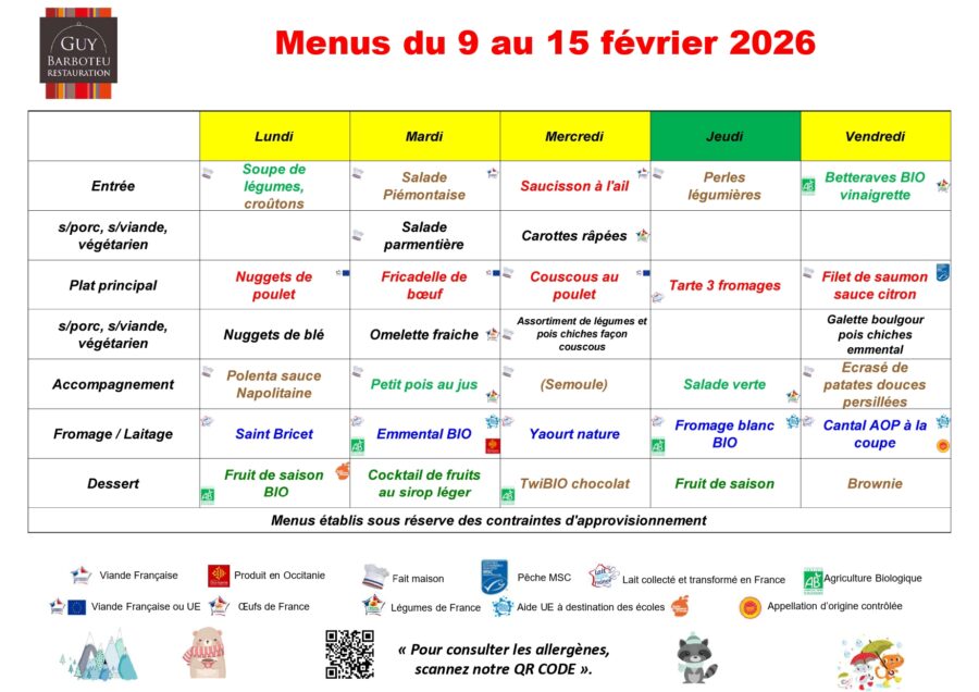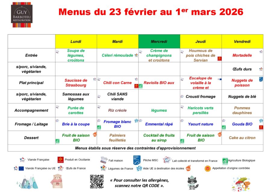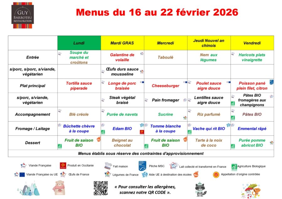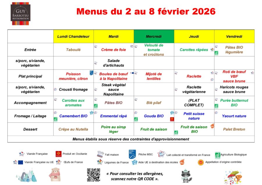 Les menus sont désormais accessibles sur le PORTAIL FAMILLE